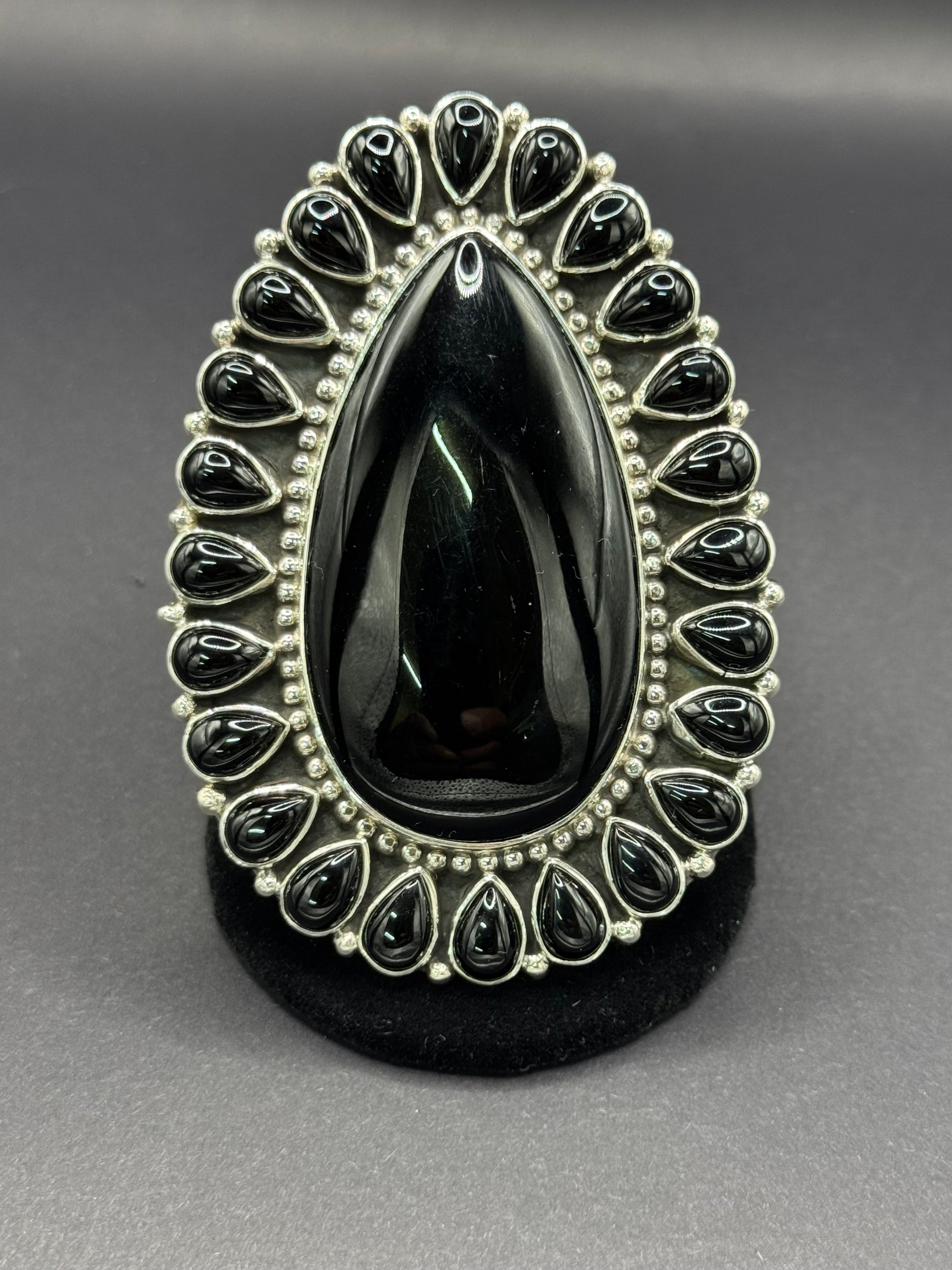 Tonya June Rafael large black onyx cluster ring. Adjustable size.
