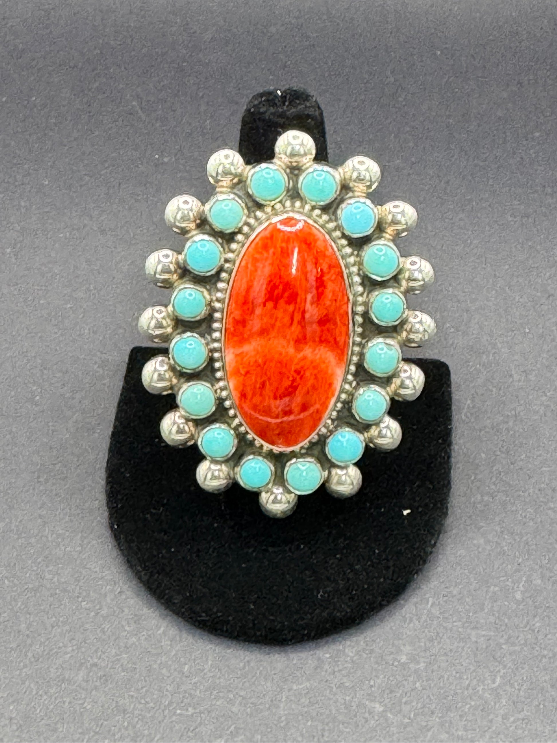 Beautiful orange spiny and turquoise (incredible coloring)ring by Tonya June Rafael.