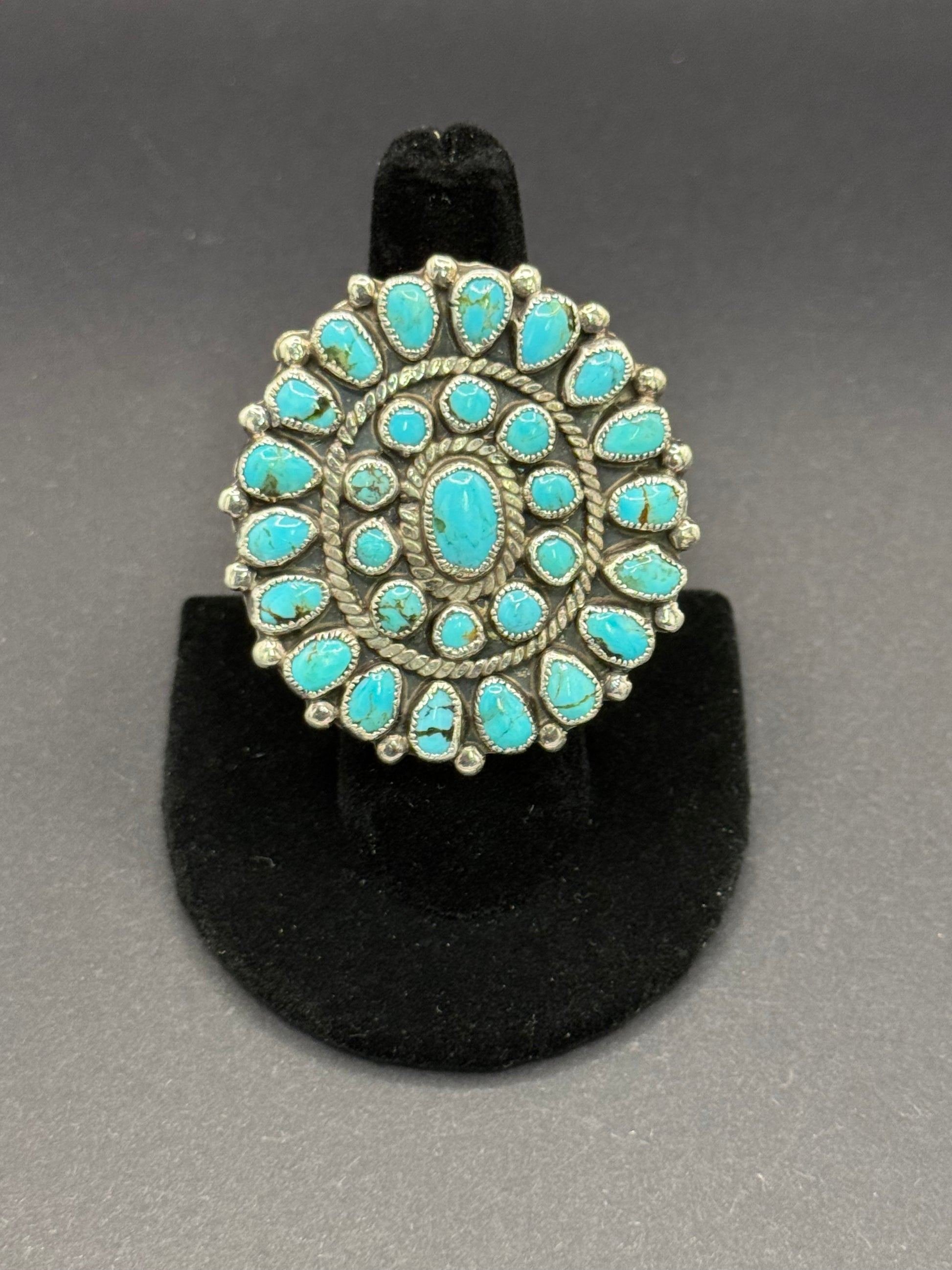 Gorgeous silver and turquoise cluster Ring. Size 8.