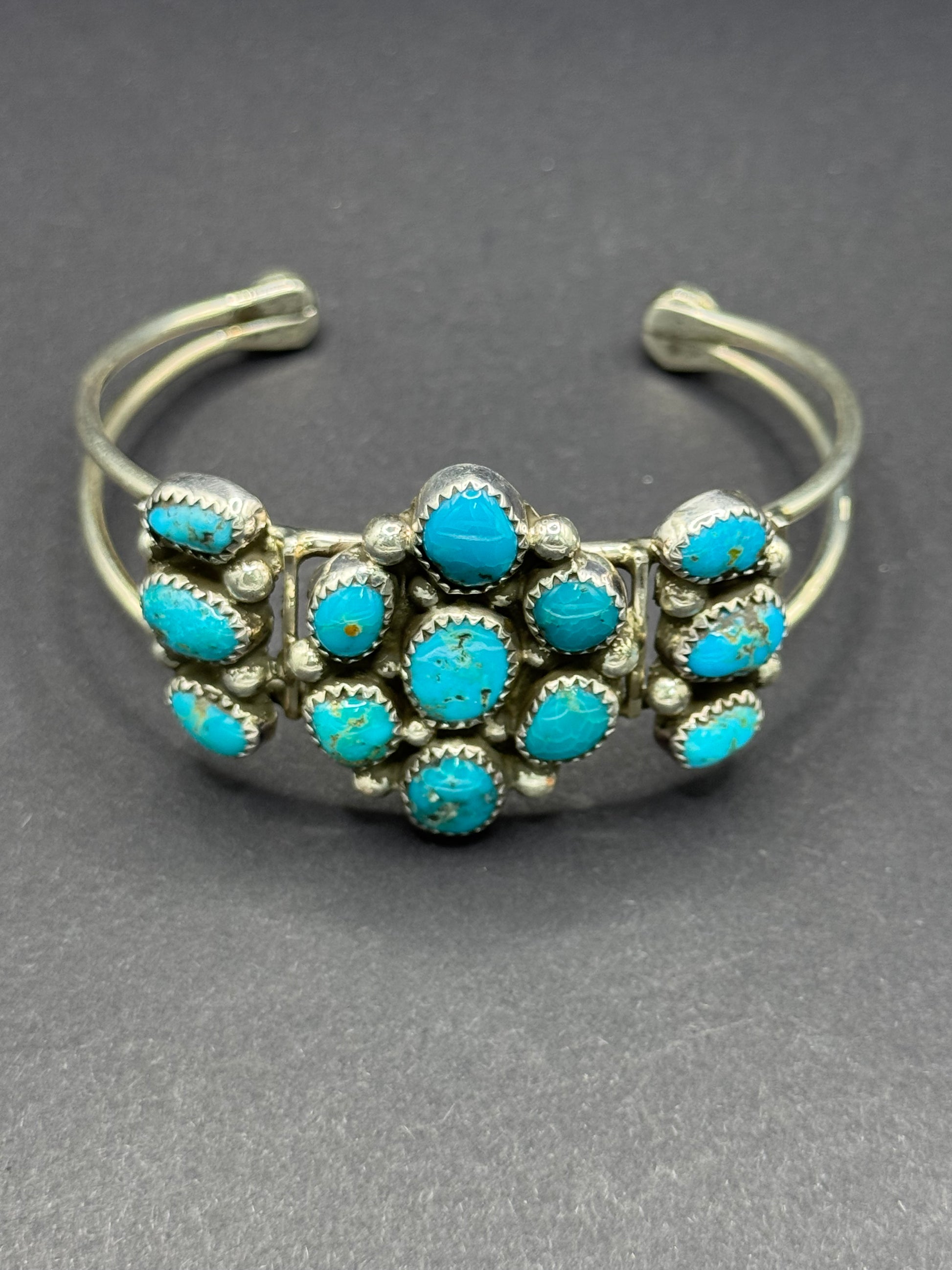 Turquoise (13 stones) and silver cuff by Pricilla Reeder.