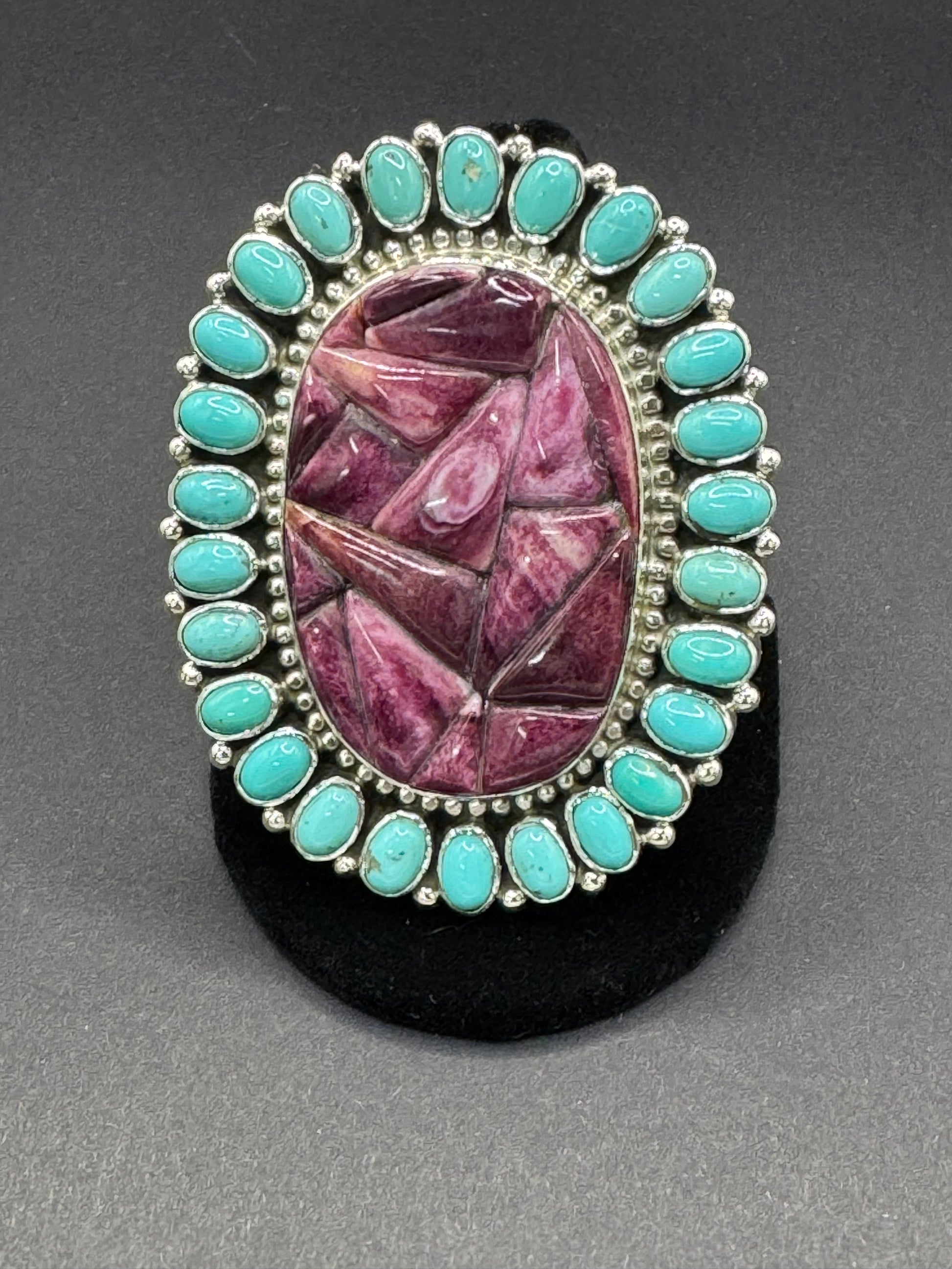 Tonya June Rafael Ring purple spiny center stones surrounded in turquoise.