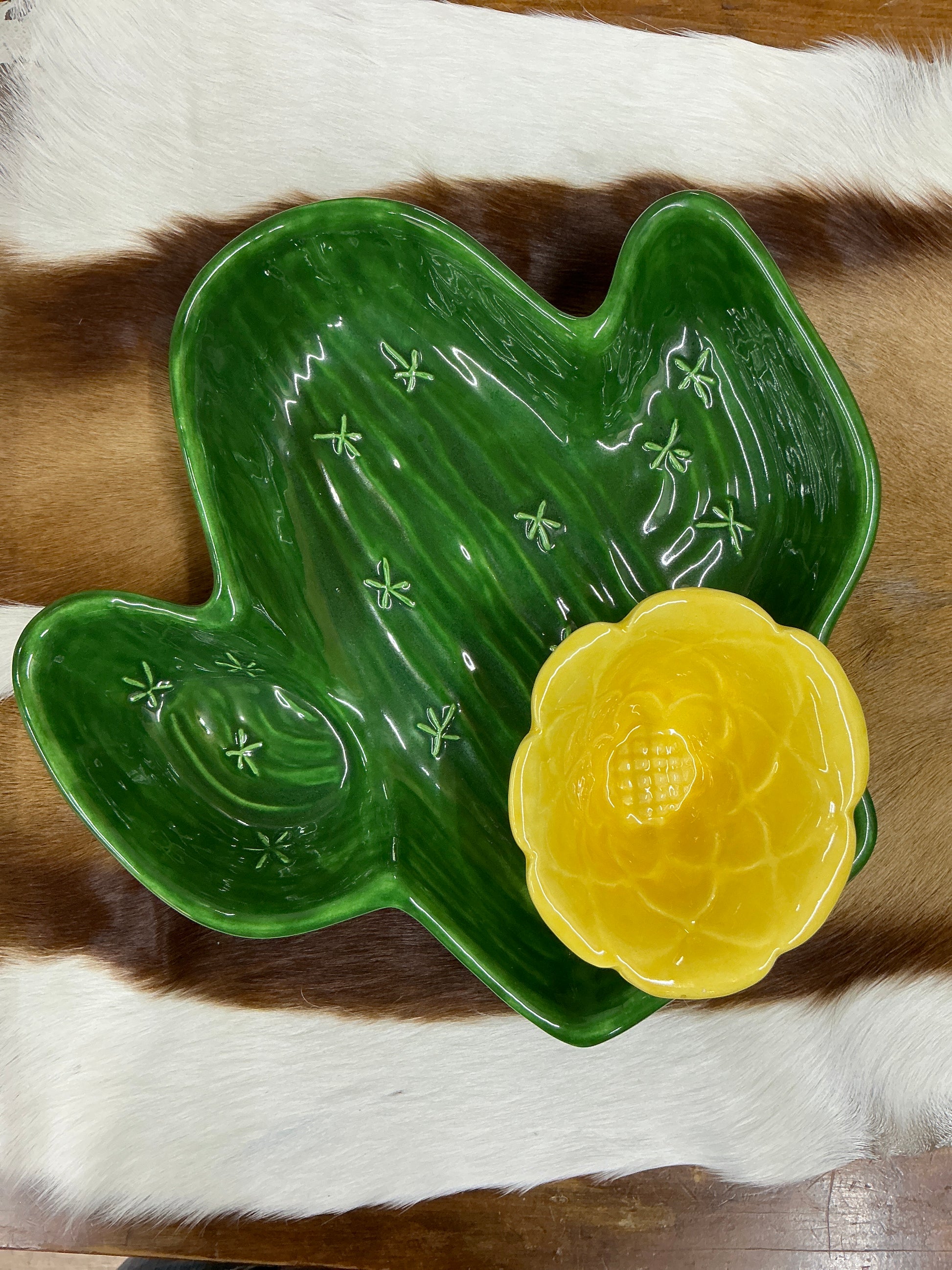 Beautiful vintage ceramic cactus with flower, chip and dip set. Perfect for parties.