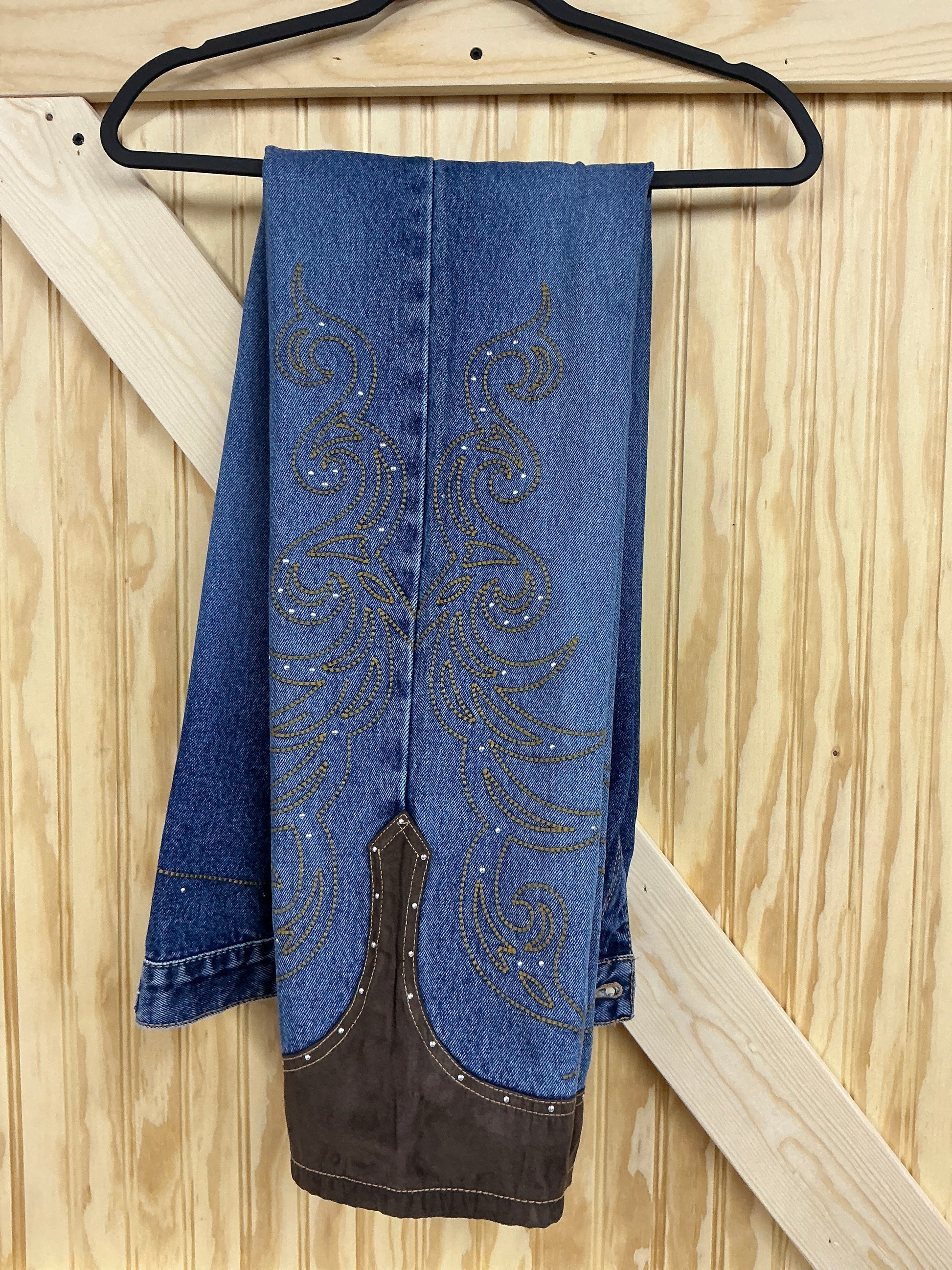 Excellent vintage condition, Slim Fit, Lawman jeans with embroidered and suede type fabric accents.
