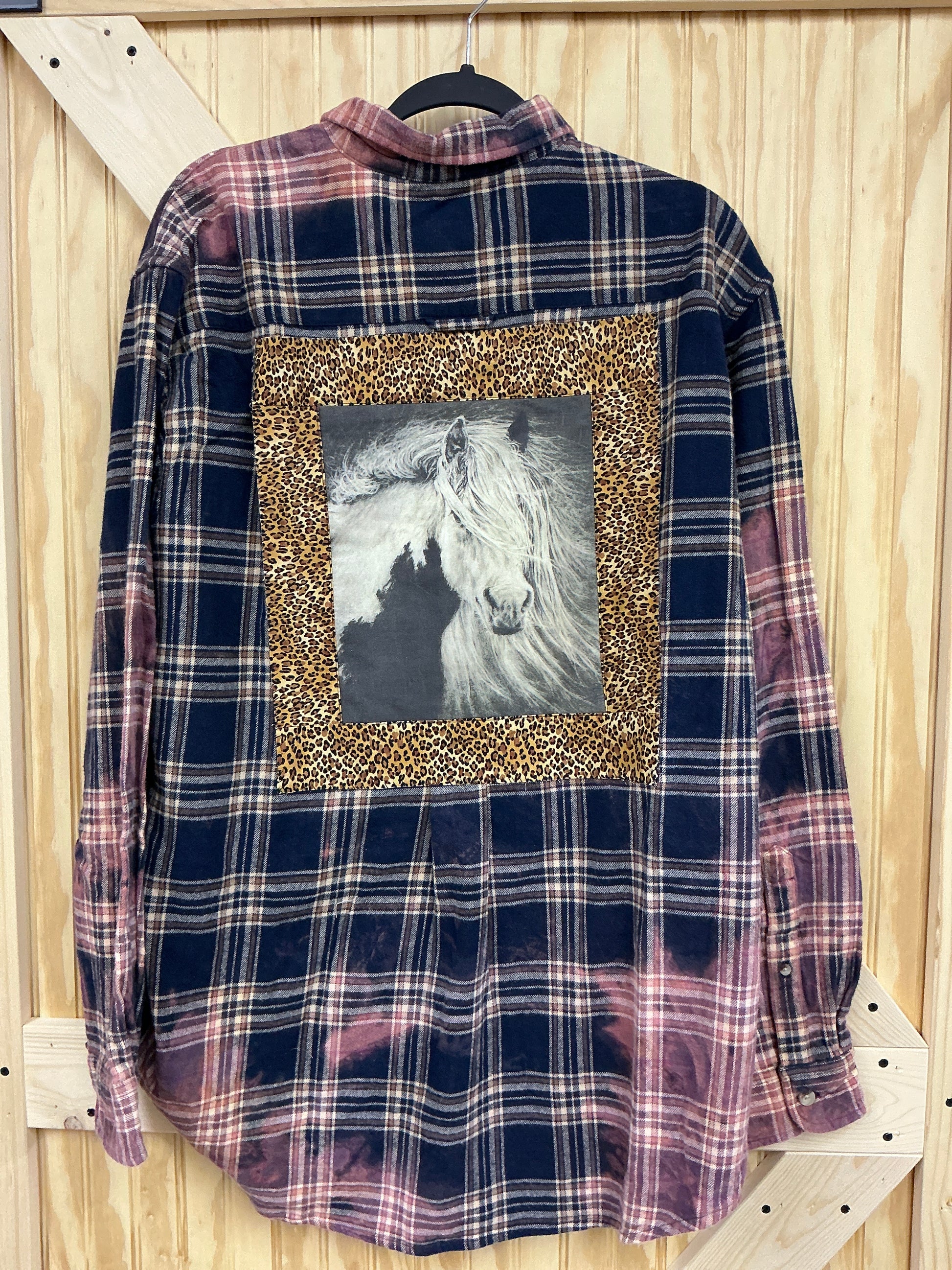White, Wild Horse. Can you say, stinking cute? These yummy flannel shirts are head turners and sure to be a big hit. Various styles and sizes available. No duplicates. Redesigned in the USA.
